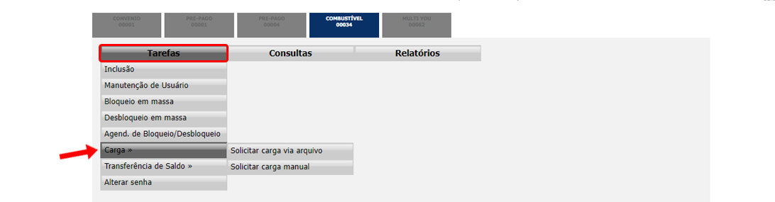 4° Passo: No menu “Tarefas” procure a sessão “Carga”.
